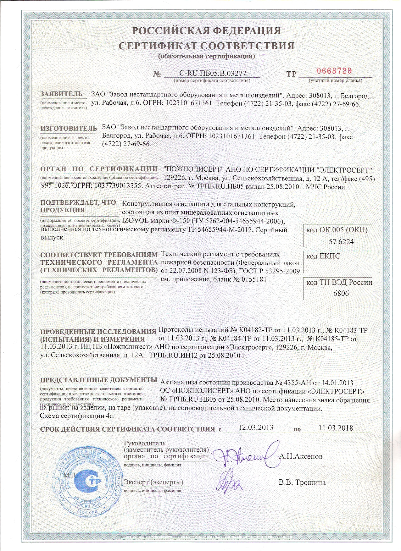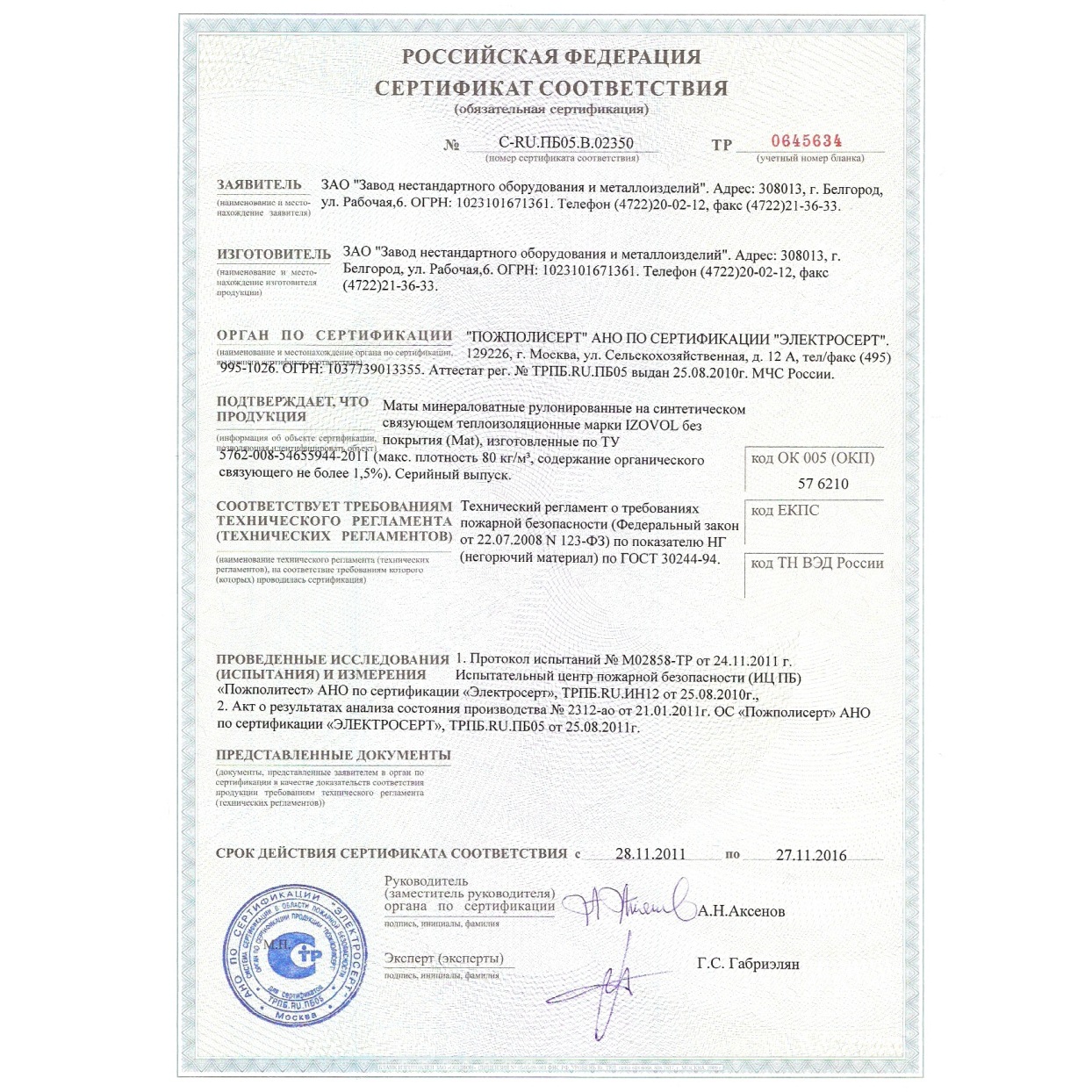 Группа горючести материала - НГ (негорючий), что делает его безопасным в использовании. Утеплитель Изовол СТ-50 50х600х1200 не поддерживает горение и не выделяет вредных веществ при нагреве.